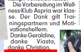 Im letzten Jahr leitete Christian Schön noch eine BMW-Filiale. In diesem Jahr hat er sein Hobby zum Beruf gemacht. Als Triathlet gibt er Sportkurse im Bereich Laufen-Radfahren-Spinning und Nordic Walking – und läuft selber 30 Kilometer am Elbstrand, bevor er im Fitness-Studio Shaping-Up Spinning-Kurse gibt oder in Nordic- Walking ausbildet. Weitere Infos: www.Lebensfitness.de oder Telefon 0177-451 55 94 |
