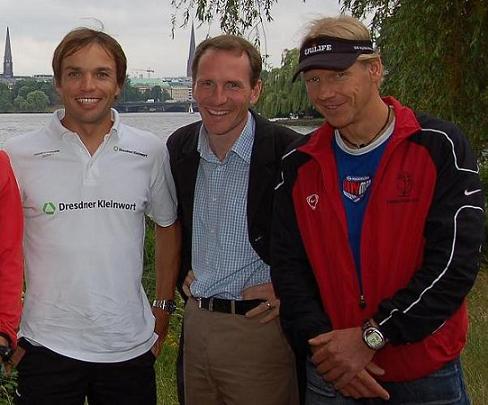 beim Pressefrühstück des Dresdner Kleinwort Triathlon Teams am 27.6. in Hamburg |